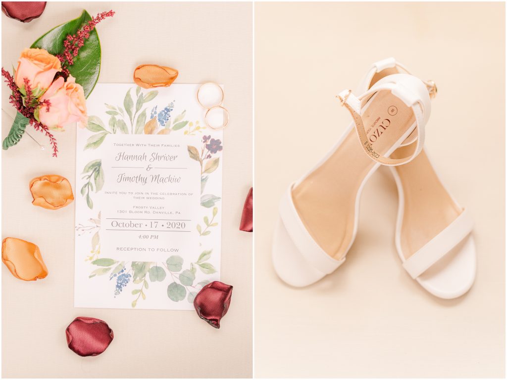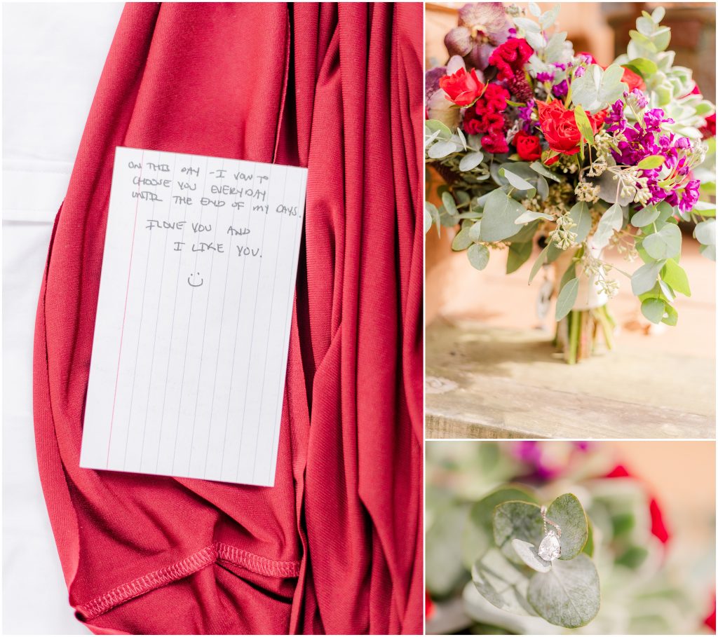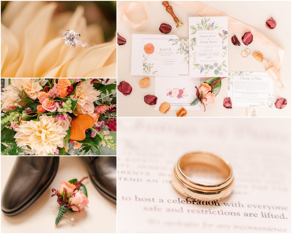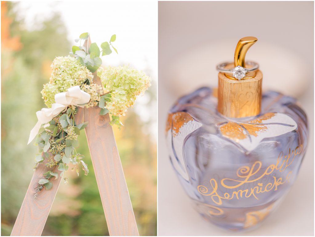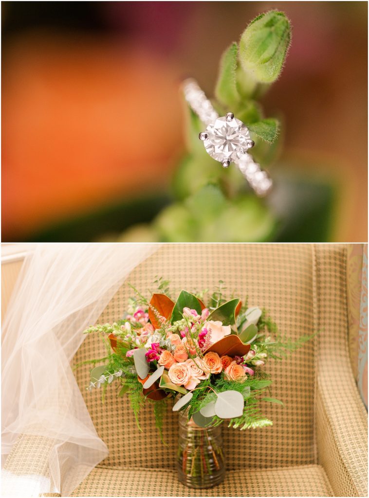 When I first start shooting on a wedding day, I start with the details. That’s the dress, earrings, shoes, invitation suite, and of course the rings. It’s at the top of my list because I love detail shots! I love getting super creative first thing. That raw creative energy that I start my day with is how I keep my creative energy flow throughout the day. By taking pieces of ribbon that match your wedding colors and using them with the rings or the invitation suite, I get to keep those details in the back of my mind throughout your wedding day. Plus, the detail photos look stunning in an album spread!